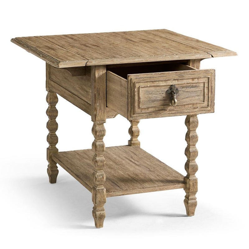 TheSagehill Winged Side Table brings a blend of classic detailing and adaptable functionality to transitional interiors. Crafted in Timberon Grey Oak with turned legs and sculptural charm, this piece showcases traditional craftsmanship with a refined twist. A single drawer offers concealed storage, while a lower shelf and drop-leaf sides provide versatility for display or workspace needs. Finished with antique-inspired brass hardware, the table balances form and function with timeless appeal.