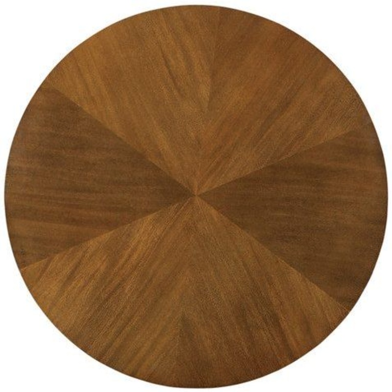 Handsome round lamp table designed as an end table or to be used between a pair of chairs.