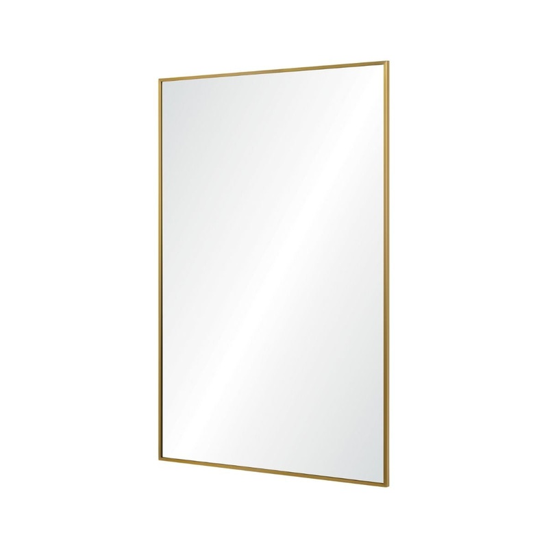 The Sanborne Mirror is traditional and sleek with its rectangular frame. Featuring a satin brass plated finish, this iron mirror adds depth to your living space above your stylish sideboard or above a vanity.