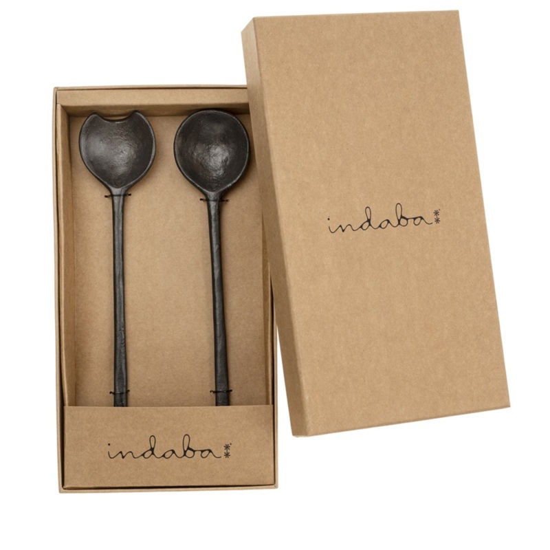Sand Cast Salad Servers, Black: Handcrafted Elegance for Dining