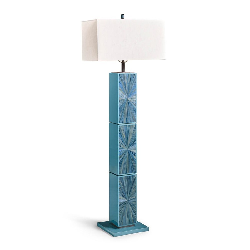 Bold, sculptural, and unmistakably modern, the Sapphire Floor Lamp commands attention with its rich Azure Blue straw marquetry. The tall, linear base features a radiant, hand-laid pattern that pulses with movement and texture. A rectangular fabric shade and refined stainless steel accents complete the look, offering a stunning statement piece for contemporary living rooms or bedrooms.