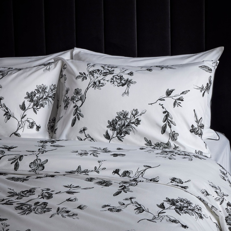 Transform your sleeping space with the timeless elegance of the Sapporo monochrome floral printed duvet cover set.