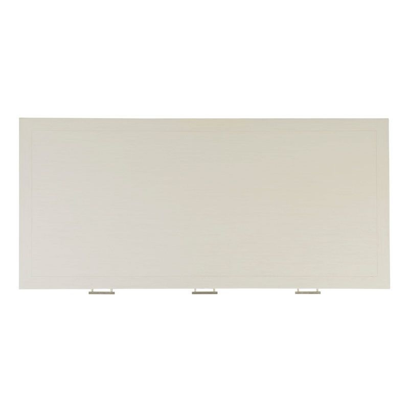 Description: A rectangular framed top rests over squared corner posts over three apron rail drawers.