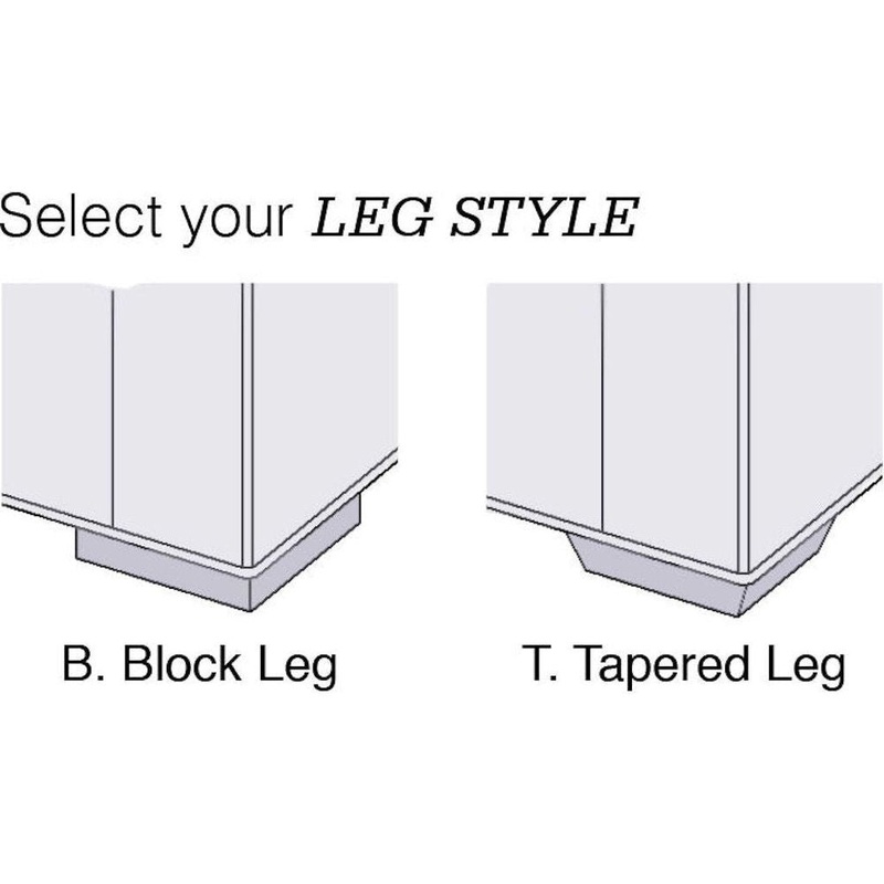 - Trim: Standard topstitch trim. Choice of Block Leg or Tapered Leg.