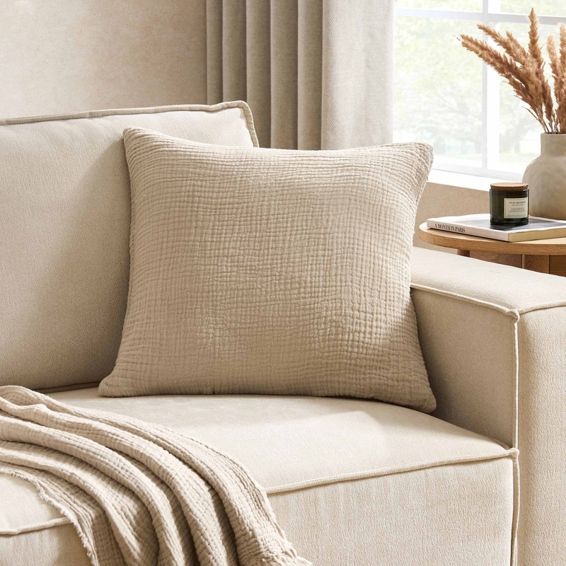 Made from 100% cotton muslin, this throw combines delicate texture with lightweight comfort. The tufted design adds a touch of understated elegance, while the four-layer construction keeps you cosy year-round. Drape it over your sofa or bed for a relaxed, inviting look.