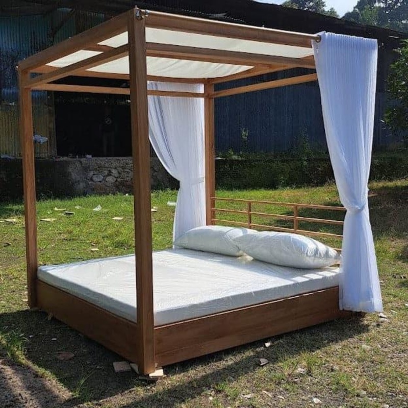 Lounge in style with your loved ones with this stunning outdoor daybed.The oversize mattress has plenty of room for activities, and the four-poster design allows you to close off the lounge with curtains if you need some shade or relief from bugs.