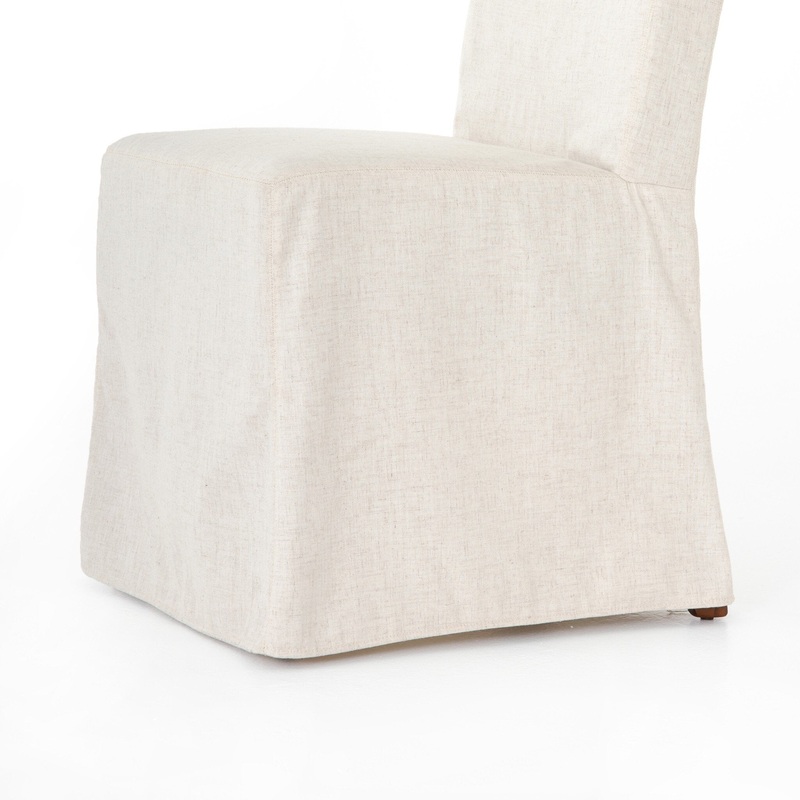 The Saville Armless Dining Chair boasts a natural elegance. With an ivory performance-grade slip cover, and curved backrest sihouette, this dining chair is the perfect addition to your dining room or kitchen table.