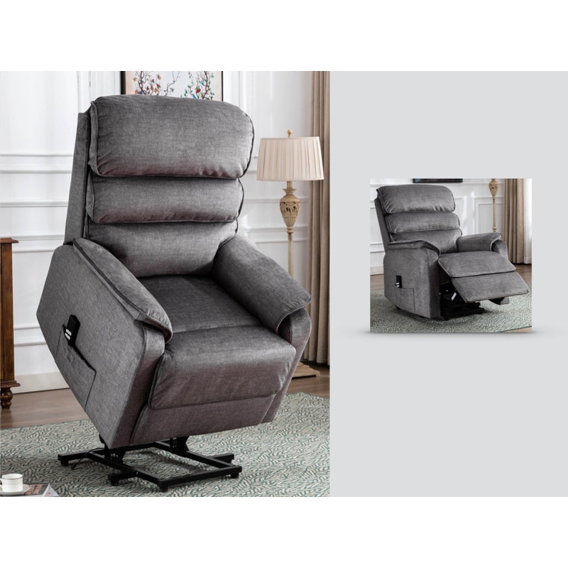 Relax in style and comfort with the Savoy Grey Fabric Lift and Tilt Armchair. This luxurious full electric power dual motor chair is constructed with soft-touch grey fabric and features a high headrest and lumbar support for optimal comfort. With a Lift and Tilt Mechanism and push button recline function, as well as a USB socket, you’ll be able to fully recline and truly enjoy a restful evening.