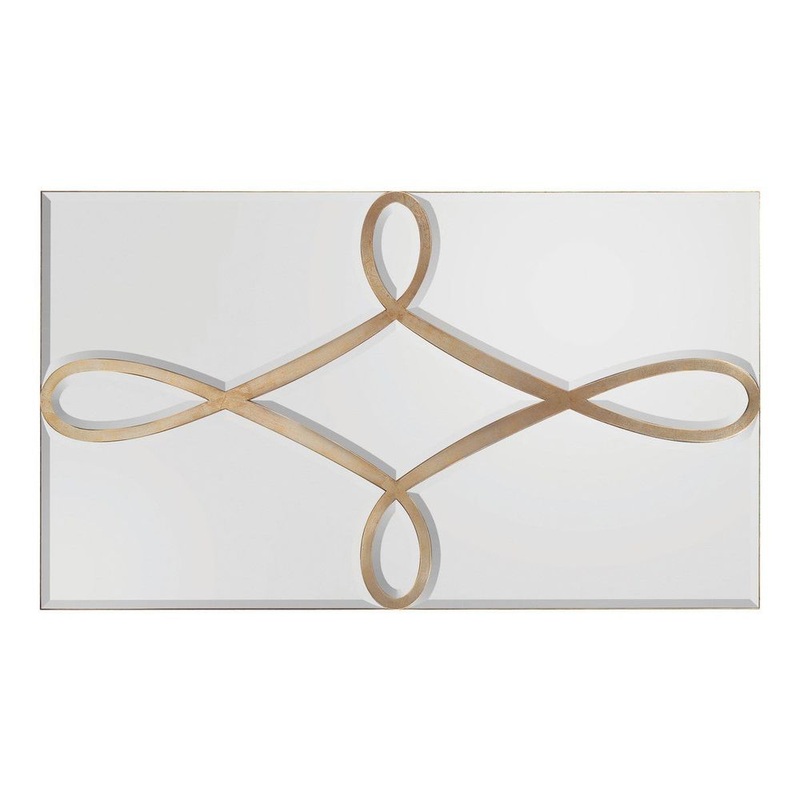 Description: This modern beveled mirrors set around and within a venetian finished scroll design.