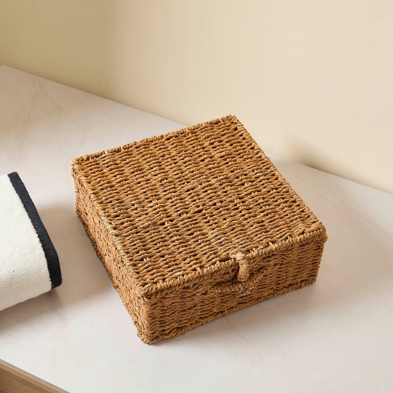 Tidy up your space in style with this charming seagrass small storage organiser.