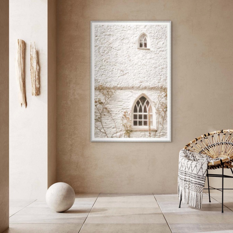 Indulge in the luxurious beauty of Secret Abode II. Photos of sun-drenched architectural details captivate, while the soothing palette of white and cream brick and stone invite relaxation. Encased in a light, striated-textured, neutral-toned moulding, this piece exudes sophistication and exclusivity. Enhance any space with this elegant addition.