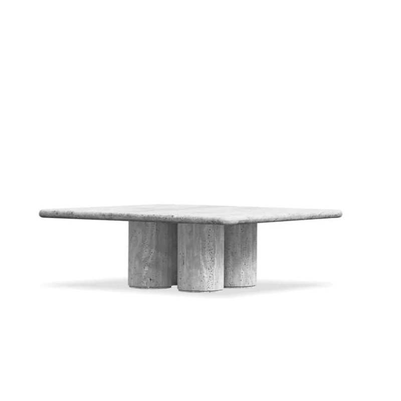 Sculptural. Grounded. Architectural. The Shelter Coffee Table in grey travertine blends bold form with natural elegance. A rounded rectangular top rests on twin cylindrical bases, emphasizing balance and symmetry. Carved entirely from honed travertine, each piece showcases unique veining and tonal variation, bringing timeless sophistication to any space.