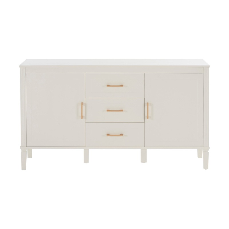 This piece is the perfect combination of style and modern functionality. Designed in a stunning natural shade, the sideboard also has brushed gold-effect rectangular handles, creating a soft and subtle colour contrast. Durable and built to last, the Sienna Sideboard comprises 3 drawers with metal runners and 2 side cabinets, both of which provide ample space for everything from your keys and DVDs to your books and magazines.