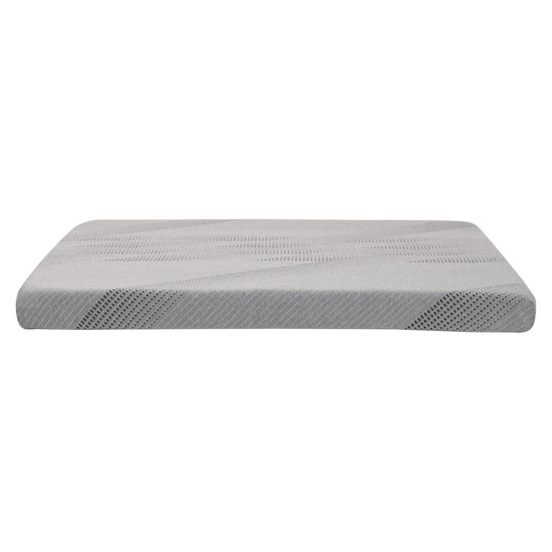Complete your sleeper sofa with this queen-sized memory foam mattress. When your sofa is converted to the pull-out bed, this mattress will be a comfort to sleep on. Made with a top layer of gel memory foam and a bottom layer of high-density foam, it measures 4.5″ thick. The mattress is conveniently hypoallergenic so those with sensitivities can rest easy as well. It is encased with a gray cotton cover with a unique stitch design. The sleeper sofa is sold separately.