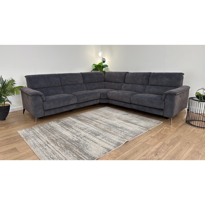 Sofology Illinois Fabric 2 Corner 2 Power Recliner/Headrest in Lifestyle Mottled Charcoal