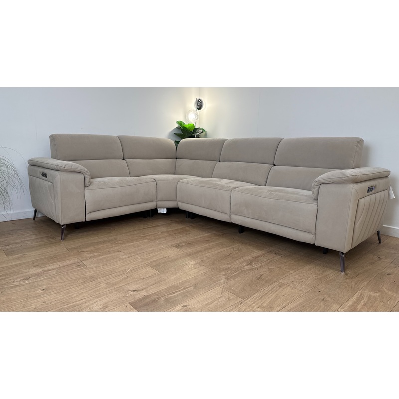 Sofology The Fratelli 1.5 Corner 3 Reclining Sofa in Lifestyle Nubuck Feel Fabric Stone