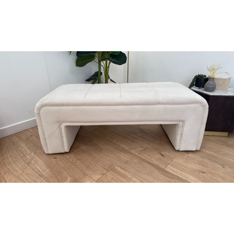 Sofology The Oscar Fabric Footstool in Fine Textured Chenille Ecru All Over