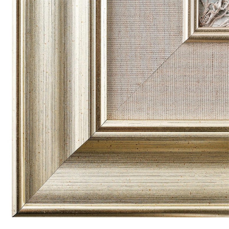 Soft Loop Illusion is a delicate work of art created from oil paint and paperboard on canvas. The piece showcases tranquil gray tones overlain by looping strands of sisal rope, contributing a wealth of texture. This hand-made artwork is held within a silver gallery frame, completing the look.