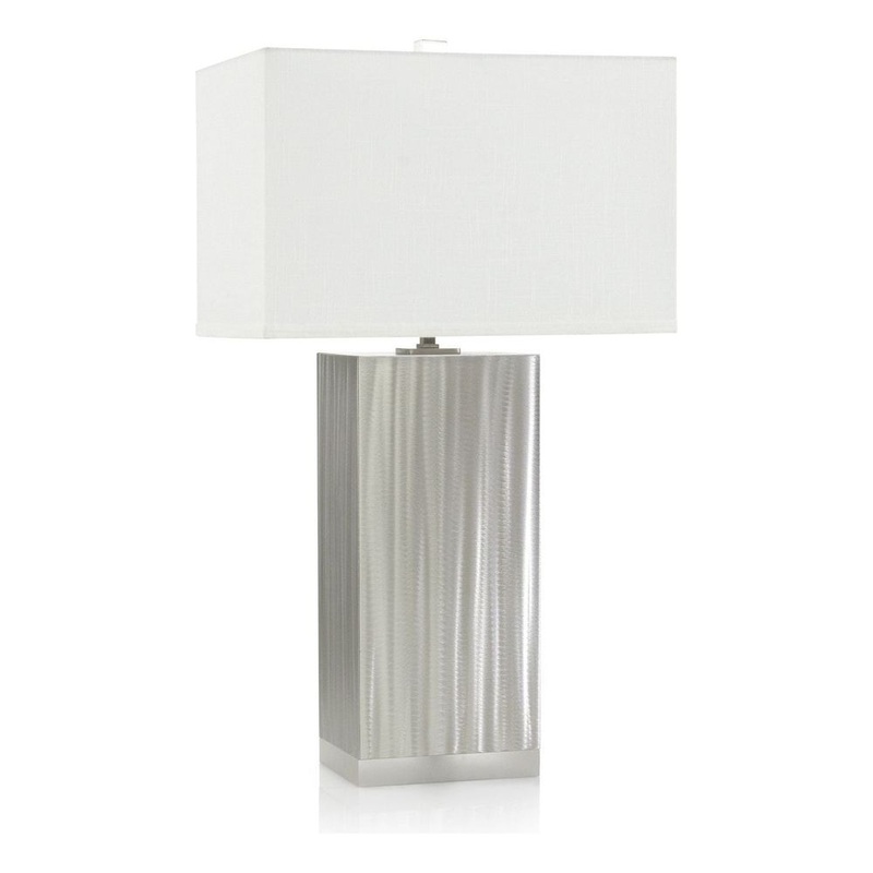 Description: This Solis Steel Brushed Spiral Silver Table Lamp with an acrylic base is beautiful in it’s simplicity.