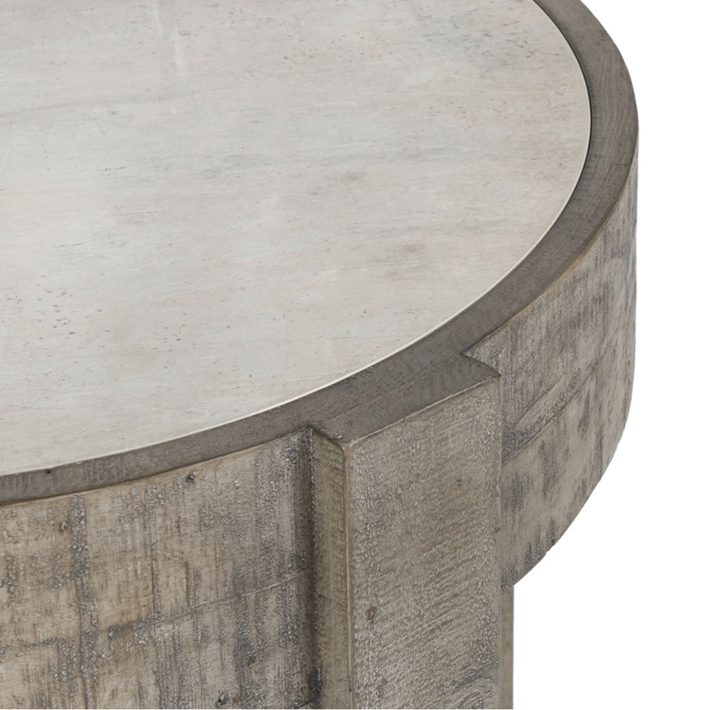 Refined yet rustic, the Sonoma End Table effortlessly blends concrete and reclaimed pine for a distressed yet elegant look. The organic water-based finish highlights the natural variations, adding a touch of sophistication to any room. Hand brushed and polished, this 26″ round table is truly a work of art.