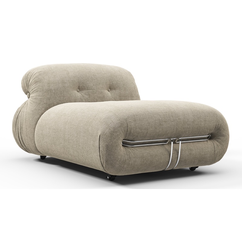 The relaxed and informal design approach of the Soriana collection reflects the 1970s’ emphasis on creating comfortable and inviting living spaces. This period witnessed a shift towards more casual and accessible interiors, encouraging a sense of freedom and self-expression within the home. Defined by its voluminous curves and clamp-like exoskeleton, the Sorianas generous upholstery wraps around its rounded form, finished with buttoning on the seat and backrest for a subtle quilted effect. Explore the full collection for matching pieces.