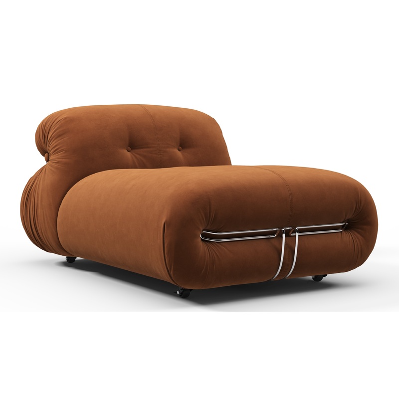 The relaxed and informal design approach of the Soriana collection reflects the 1970s’ emphasis on creating comfortable and inviting living spaces. This period witnessed a shift towards more casual and accessible interiors, encouraging a sense of freedom and self-expression within the home. Defined by its voluminous curves and clamp-like exoskeleton, the Sorianas generous upholstery wraps around its rounded form, finished with buttoning on the seat and backrest for a subtle quilted effect. Explore the full collection for matching pieces.