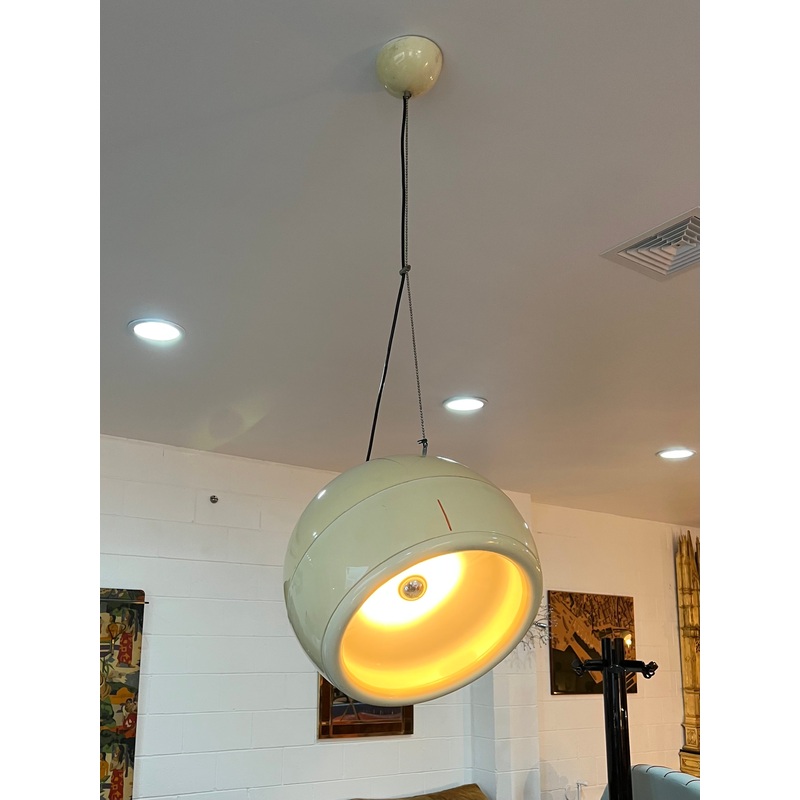 Add a touch of iconic Italian Space Age design to your interiors with this rare Pallade pendant lamp designed by Studio Tetrarch and produced by Artemide Milano in the 1960s. Its bold, sculptural form and glossy finish embody the futuristic aesthetic of the mid-century era.