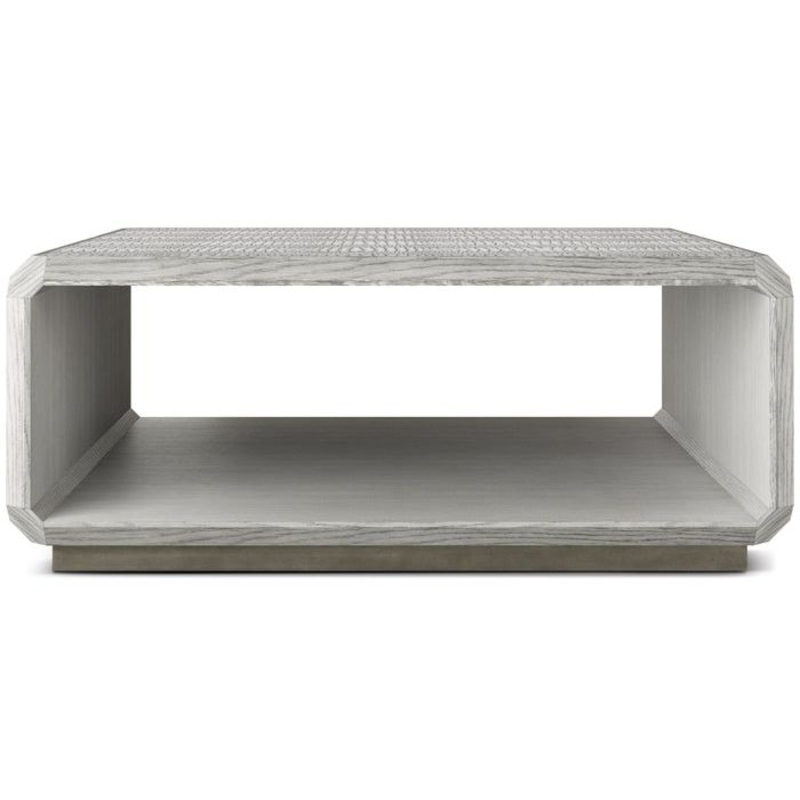 Description: The Spencer St. James collection blends contemporary flair with exquisite creativity and detail. Made of oak and adorned with crocodile-embossed leather, Spencer St. James creates a textural statement. Available in a light Argento or dark Onyx finish.