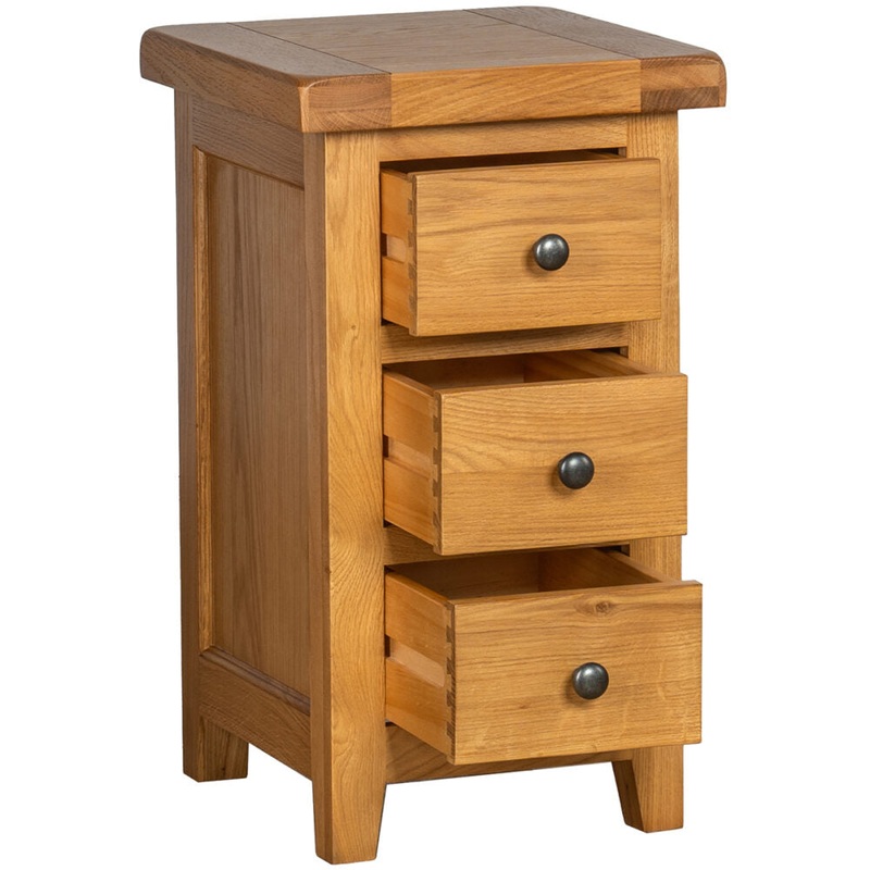 A very robust looking range it has some very unique fittings in the shape of the rustic brass coloured drop handles on the drawers and a simple knob on the doors but also features dovetailing throughout on all drawer boxes.