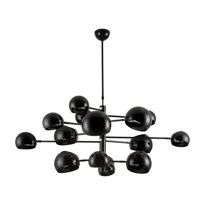 This bubbly chandelier is the perfect centerpiece for any space. Balancing fun and sophistication this piece is composed of thirteen spherical shades that radiate out from a central focal point. With adjustable shades and an adjustable height this chandelier lets you customize where the illumination goes. The light from fourteen standard 60 watt bulbs will provide plenty of ambient lighting. The glossy finish on the shades help this sleek chandelier stand out in any decor. Available in gray, white, or black.