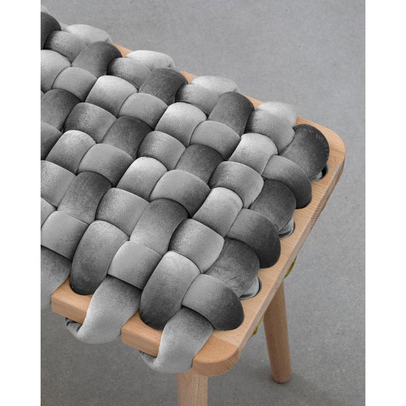 Description: Expertly crafted with a blend of fine velvet fabric and natural Beechwood, the hand-woven stool enhances any entryway or living space with its elegant and playful design. This lasting piece combines beauty and functionality, creating a stunning addition to your home.