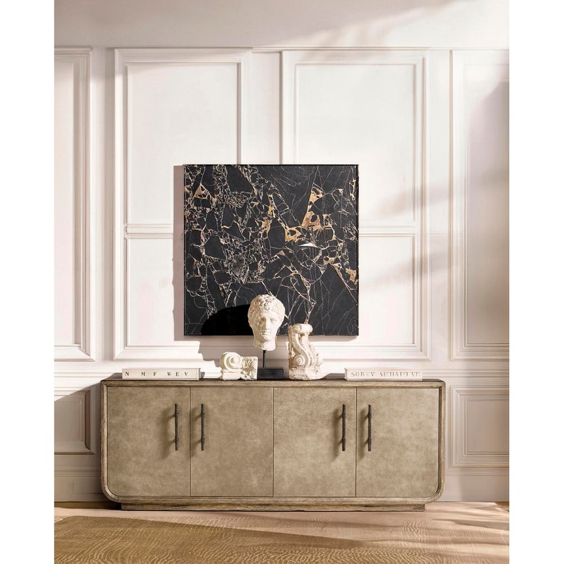 The Stone Ridge Leather Credenza is a stunning blend of modern design and organic materials, making it the perfect statement piece for your home. Finished in Tully Light Acacia, this credenza showcases four sleek doors adorned with elegant grey-brown toned leather fronts, offering a unique contrast that adds warmth and texture to the overall design. Behind the doors, adjustable shelves provide flexible storage options, making it as practical as it is beautiful. The modern silhouette, combined with natural materials, gives this piece versatilitywhether you’re complementing a rustic-inspired home or adding a touch of nature to a contemporary setting.