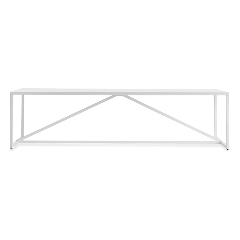 Structure and design are one with the Strut. A proud stance for any gathering. Powder-coated steel frame with polyurethane finish over MDF for the top.