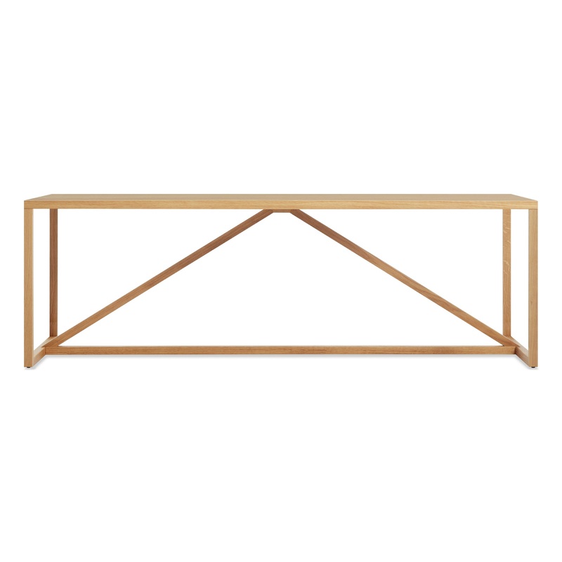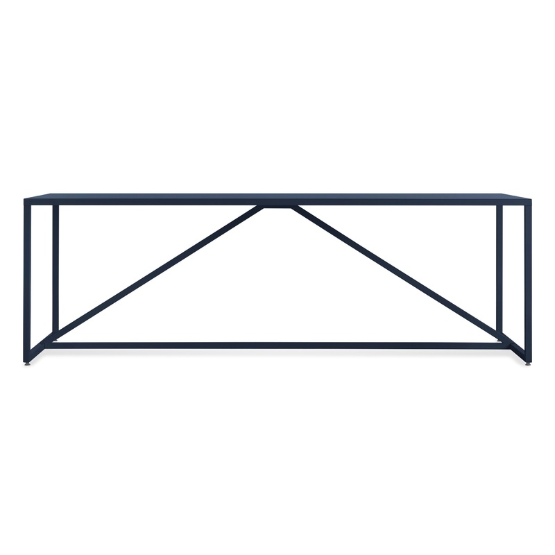 Sashay! Shantay! Strut works its architectural angles to the max. Ample work space, dining space or dance space. Powder-coated steel frame with polyurethane wood substrate top.