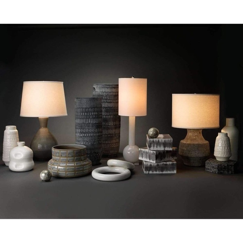 Be the first to review “Studio Table Lamp in White Glass with Tall Thin Drum Shade in White Linen”