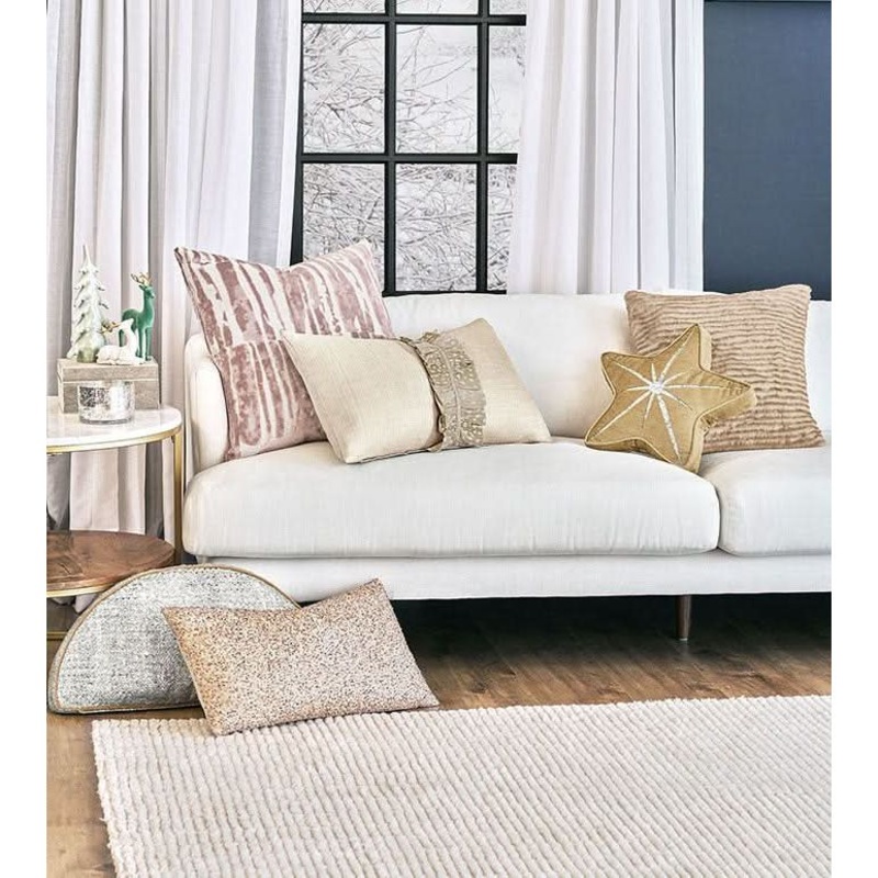 - Demilune pillow in a textured silver metallic fabric