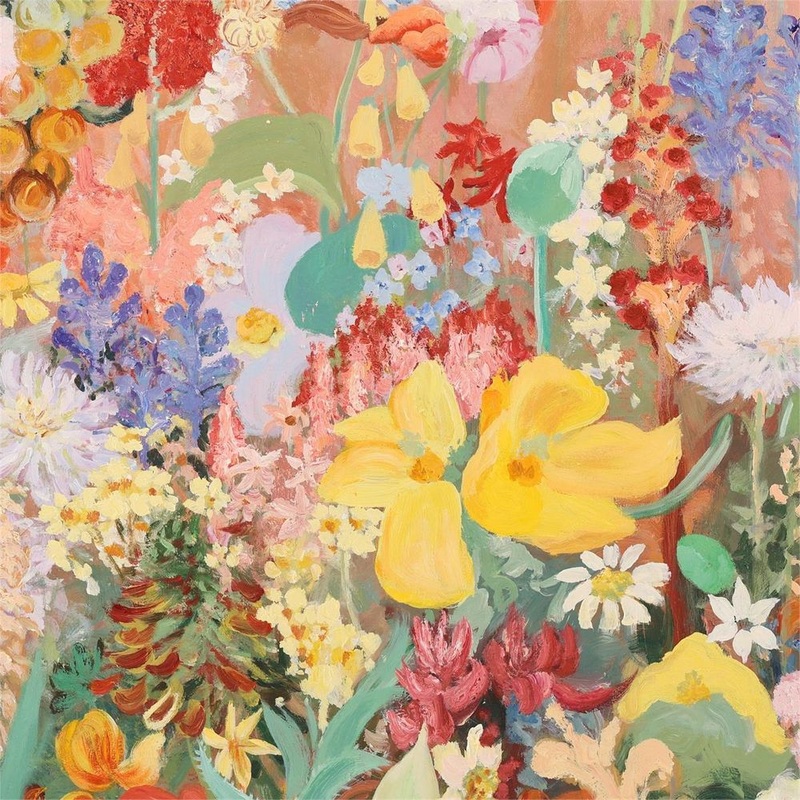 Sunwoven Florals is a gorgeous oil painting on canvas, introducing the tranquil essence of the great outdoors to any interior space. Vibrant flora in intricate detail are shown in a variety of shapes, sizes, and colors as they stretch across a vast field bathed in the warmth of a radiant sunset. This magnificent work of art is held within a black pinewood gallery frame.