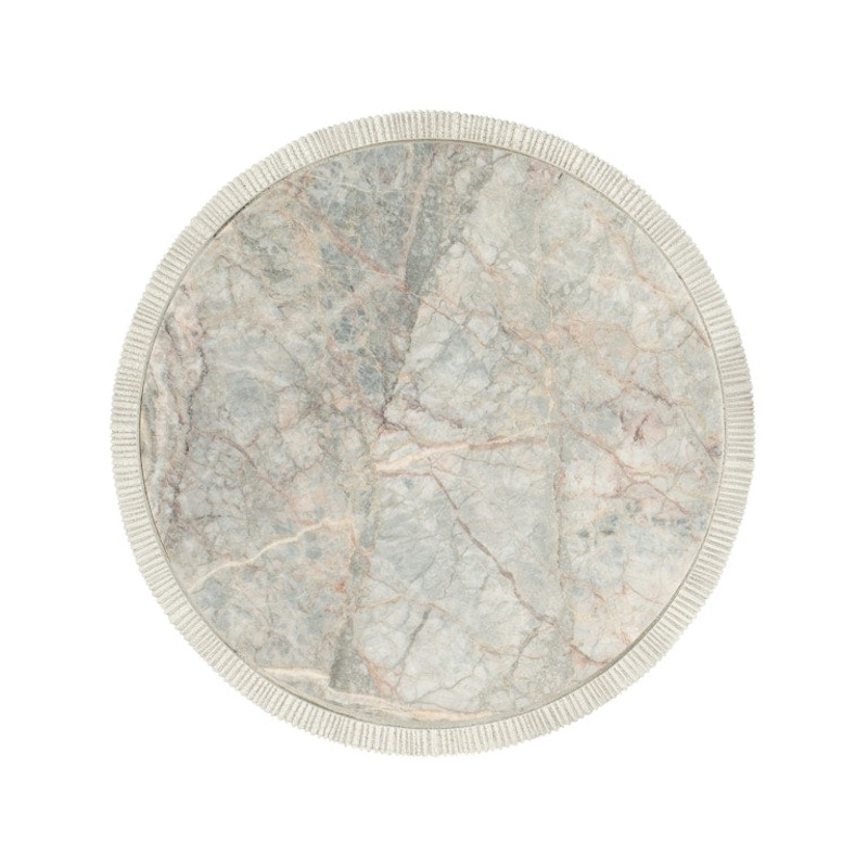 Bring the beauty of nature in with the exquisite and organic Swale Round Side Table, combining a textured gray finish over the wood base with a Honed Marple Veneer top with intricate vein patterns. Designed to create a comfortable and inviting retreat within the home, the Serenity collection is defined by its casual finishes and variety of organic textures and materials that combine to deliver a relaxed aesthetic. Inspired by casual, waterfront living, the collection was designed to bring the relaxed aura of the outside in — no matter where the consumer lives. White oak veneer delivers two key finishes a whitewashed look and a weathered gray and is accented with shades of soft coastal blue, sand blasted pine and soft white bronze metal details. Organic materials including abaca rope, natural stone, painted grass cloth, louvered details, and faux coral motifs add to its casual style. The collections silhouettes were designed to reflect three distinct personalities a traditional nature with serpentine shaped case pieces and a softer aesthetic, a modern persona with linear shapes and coral accents, as well as a more casual contemporary character with soft-edged case pieces and organic surfaces.