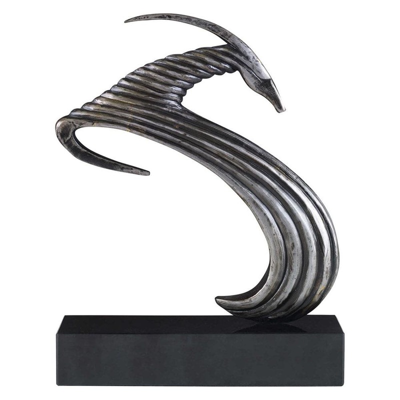 Through the ages, rams have been known to represent faith and resilience. This contemporary take on the animal is crafted from solid iron in an aged silver finish with natural distressing atop a black marble base.