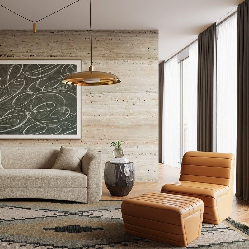 A timeless organic texture decorates the sides of this sculptural side table that harkens to the iconic drum shape