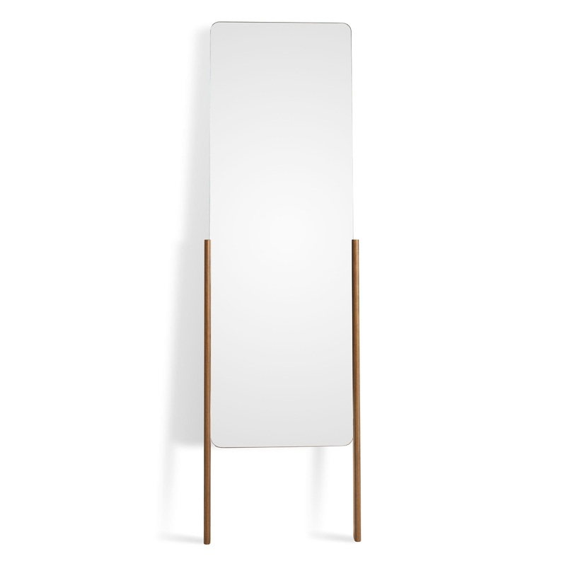 Solid walnut or ash dowel legs grip a radius edge mirror that is designed to lean confidently against the wall to capture all of you and your glorious outfit.