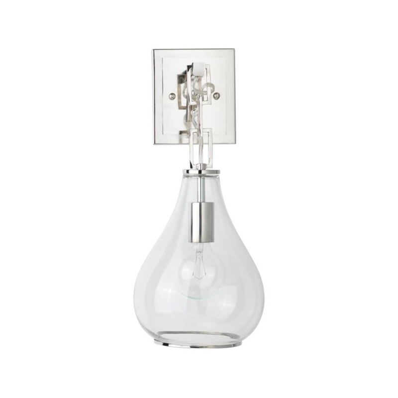 The chain link detail on the Teardrop Wall Sconce adds interest to a classic silhouette, while exquisite clear glass and antique brass finishes add refined elegance and polish to any space.