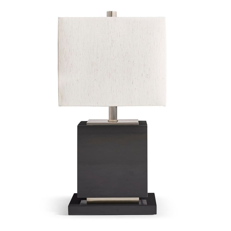 - Off-white fabric rectangular shade for soft, diffused lighting.