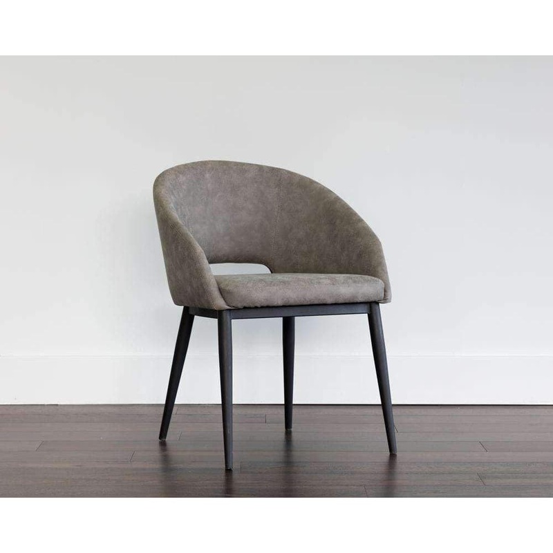 This compact barrel back chair from our Urban Unity collection is effortlessly cool. Stocked in antique grey faux leather with a black powder coated steel frame, or onyx and snow faux leather with an antique brass steel frame. Suitable for dining, office and small living spaces.