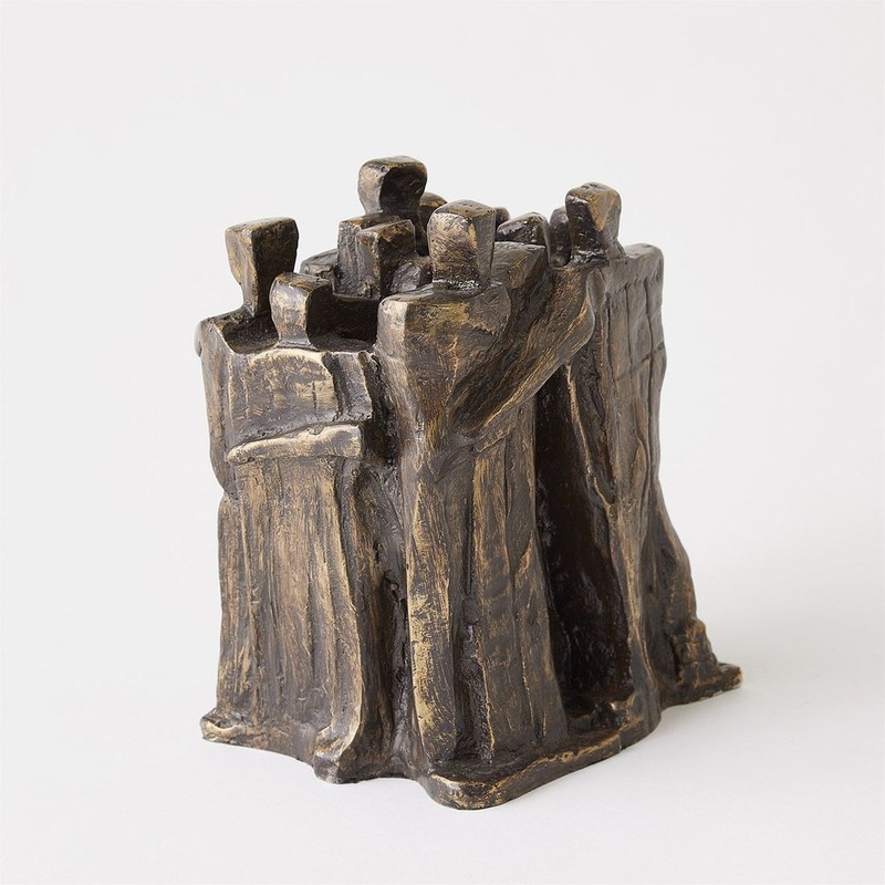 Description: The Throng Sculpture is intricately crafted from cast iron, showcasing a refined bronze finish. It stands as the perfect conversation piece for any space.