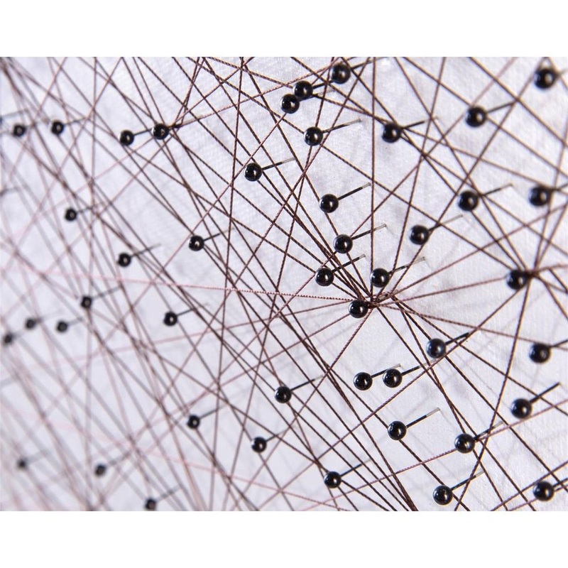 An artists interpretation of an elegant evening is made with delicate thread woven through a network of pins to create a three-dimensional work of art. It is encased in a brushed champagne gold frame.