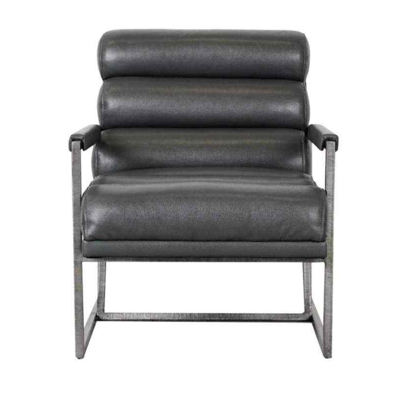 Indulge in luxury with our Topanga Accent Chair. This statement piece boasts a silvery aluminum frame, curved and tufted backrest, and 100% top grain leather in Graphic Charcoal MX. Enhance any space with its visual texture and modern flair.