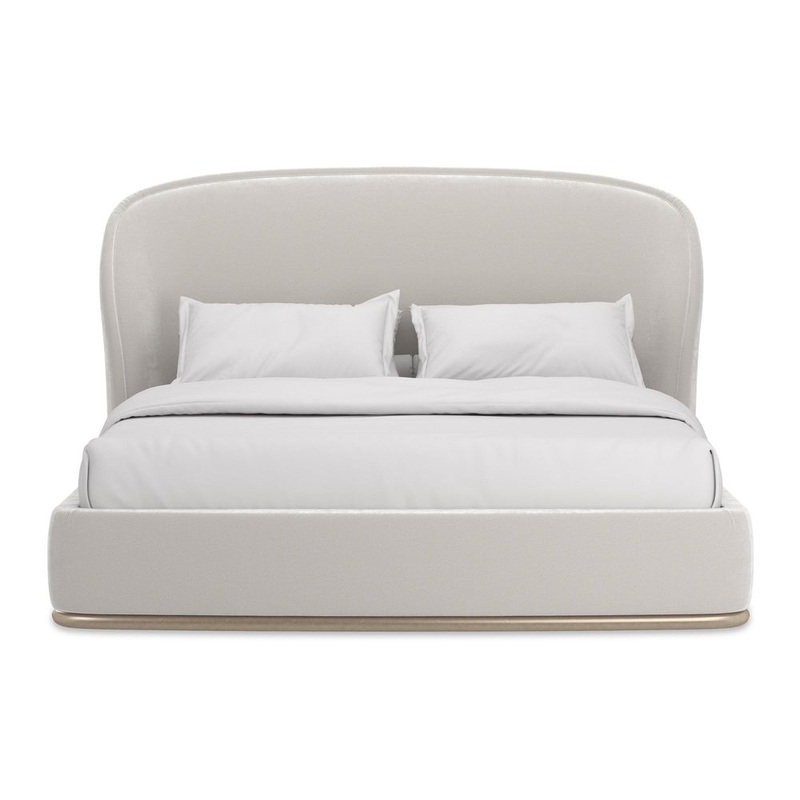 Romance is alive with the debut of the Opal Bed. The voluptuousness of this bed is derived from its soothing lines, soft finishes and plump overstuffing of its sweepingly curved back. The luxuriousness of the bed is enhanced by being fully upholstered in Alabaster faux-mohair velvet. Peeking from under the bed is a slim plinth wood base that glimmers in Charcoal Leaf. Available in Queen and King sizes.