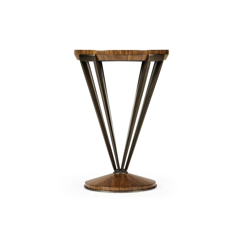 Inspired by the work of the French Modernists, this top features walnut radial slip match veneers under a transparent lacquer finish. Brass base is acid dipped and hand rubbed to achieve a rich, natural patina.