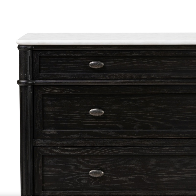Elevate your living space with the Toulouse Marble Chest. Crafted from distressed black oak and featuring a stunning marble top, this chest not only provides ample storage space but also adds a touch of elegance and sophistication to any room. Indulge in luxury with this exclusive piece.